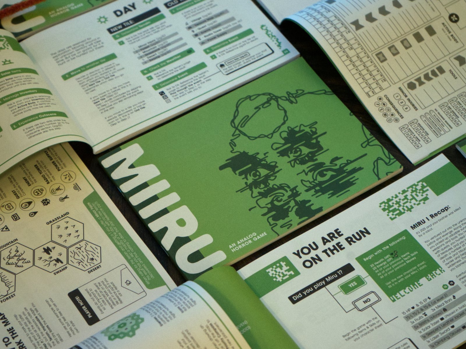 MIRU 1-3 – is a solo-first hex crawling game where the player takes on an AI god in a post-apocalyptic world.